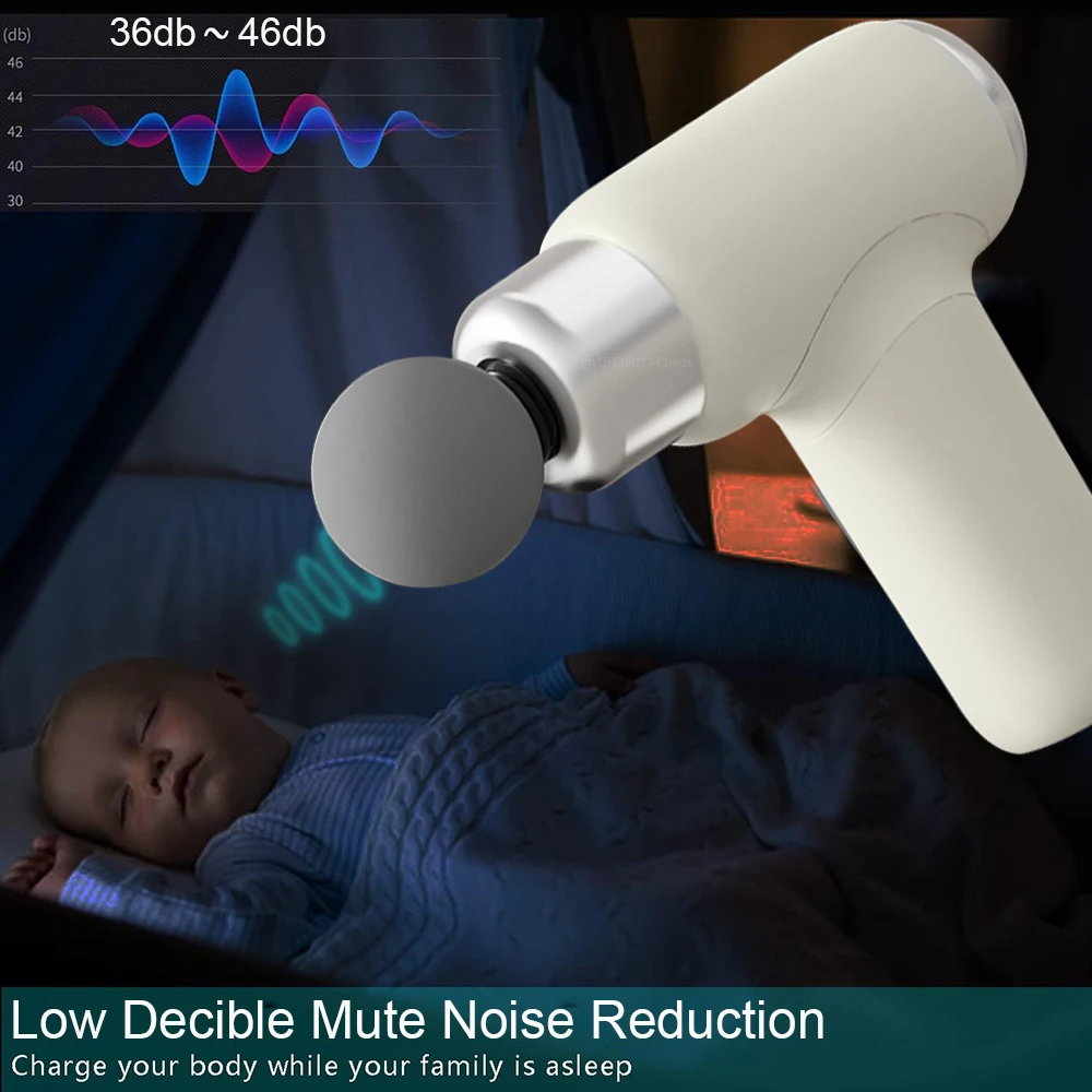 Powerful & Super Quiet: Our deep tissue percussion massager has a high power motor, brings you a deep relaxation experience. 36db-46db low noise design ultra-quiet percussive massage gun muscle treatment available anytime, anywhere. You can use it at home, gym and office without causing any disturbance.