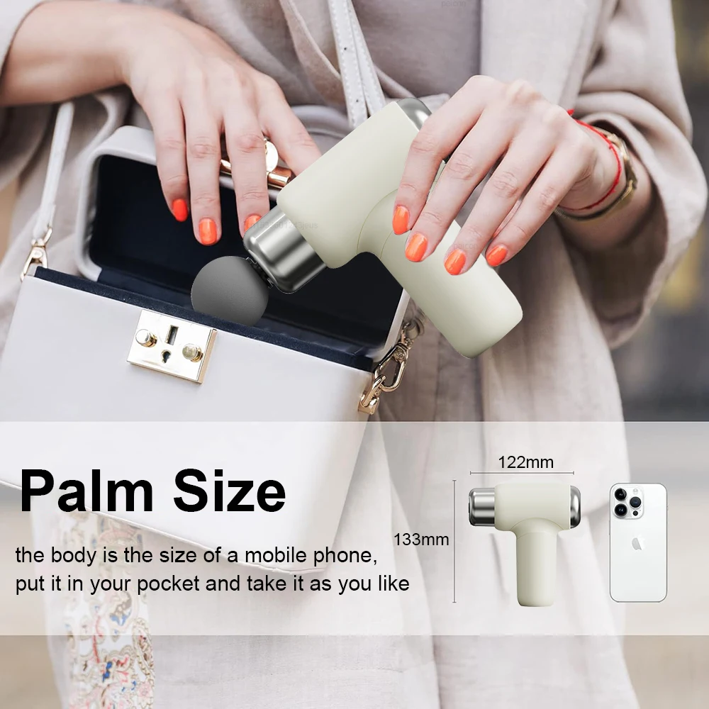 Mini Size&Easy to Carry:The portable handheld massager is ergonomic designed and lightweight. Both men and women can hold it with one hand. When you finish walking, driving, fitness, running, playing ball, swimming, class and other activities, you can enjoy the massage gun to bring you relaxation.