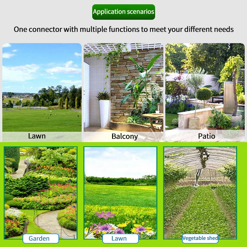 4. Application Scenarios: The 2 way hose pipe splitter is suitable for home garden irrigation, yard irrigation, agricultural irrigation, home balcony garden drip irrigation and so on.